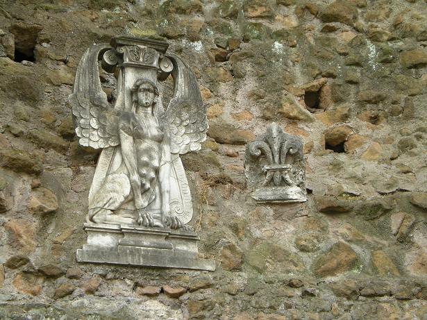 石造りの壁は剥がれて、蔦が絡まっています。