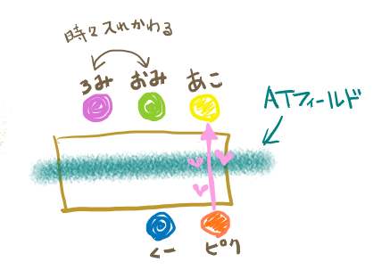 ATフィールドを境に、着実にオトナの階段を昇る3人と、着実にオタクの階段を昇る2人(笑)