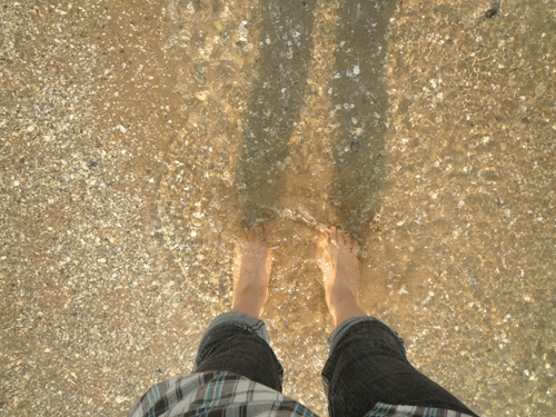 やっと浜辺に着いた!!