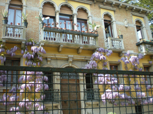 バルコニーから藤の花が垂れている家をよく見ました。