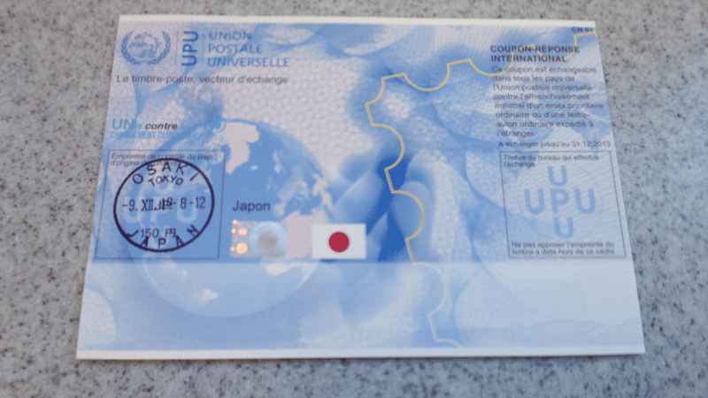 向こうの人が、こちらに招待状を送る際に自国の切手に交換できるというものです。一枚150円。