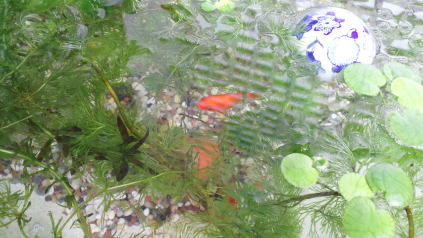 金魚も、水槽なんかより、こっちのほうがすごく立派で可愛く見える。