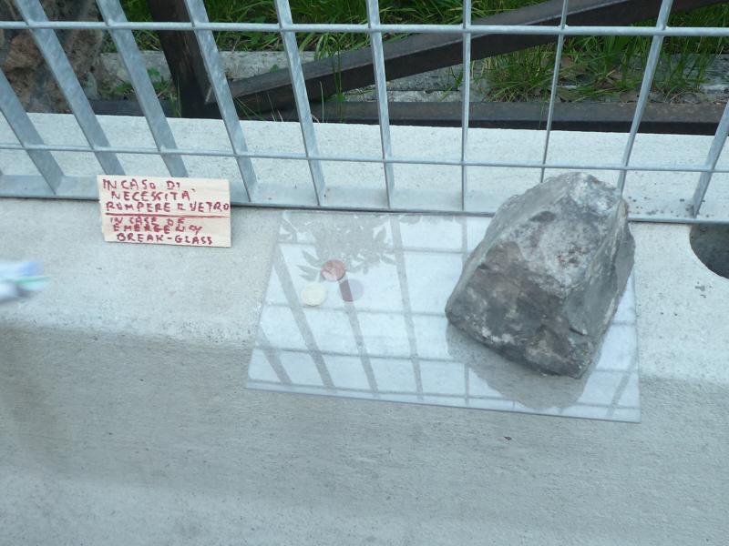 たとえばこれは、ガラスの下に小銭が置いてあって、「困ったときはこのガラスを割って使ってください」というようなことが書いてあります。
